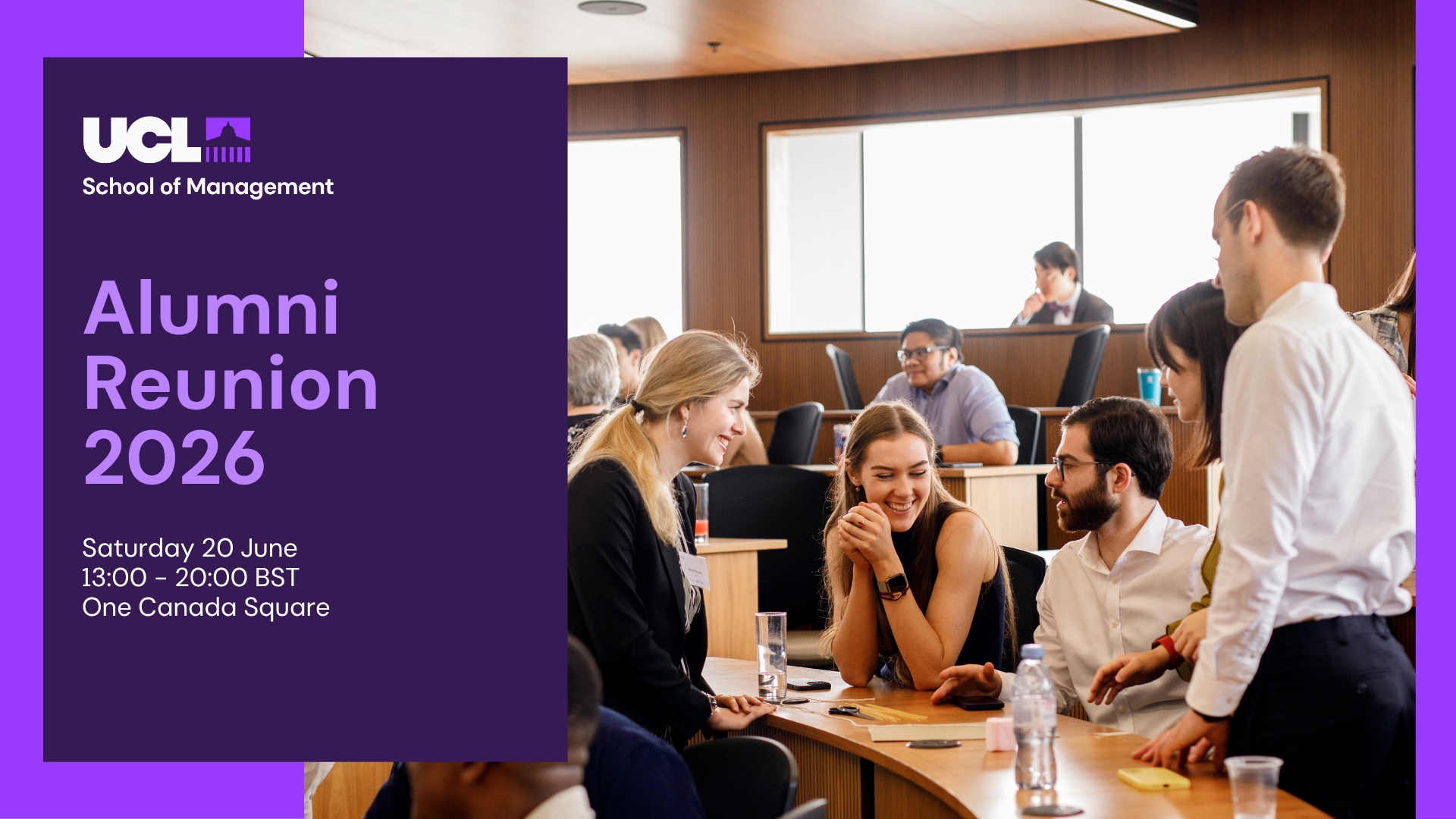 Join UCL School of Management for its annual milestone reunion, bringing together alumni to celebrate their 5, 10, and 15+ year graduation anniversaries.