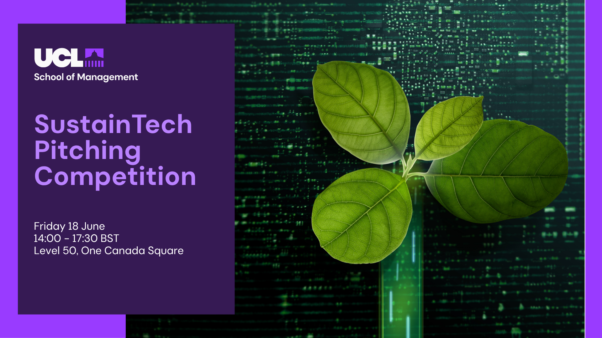 Join us on Thursday 18 June from 14:00 - 17:30 BST for our School’s annual SustainTech Pitching Competition.