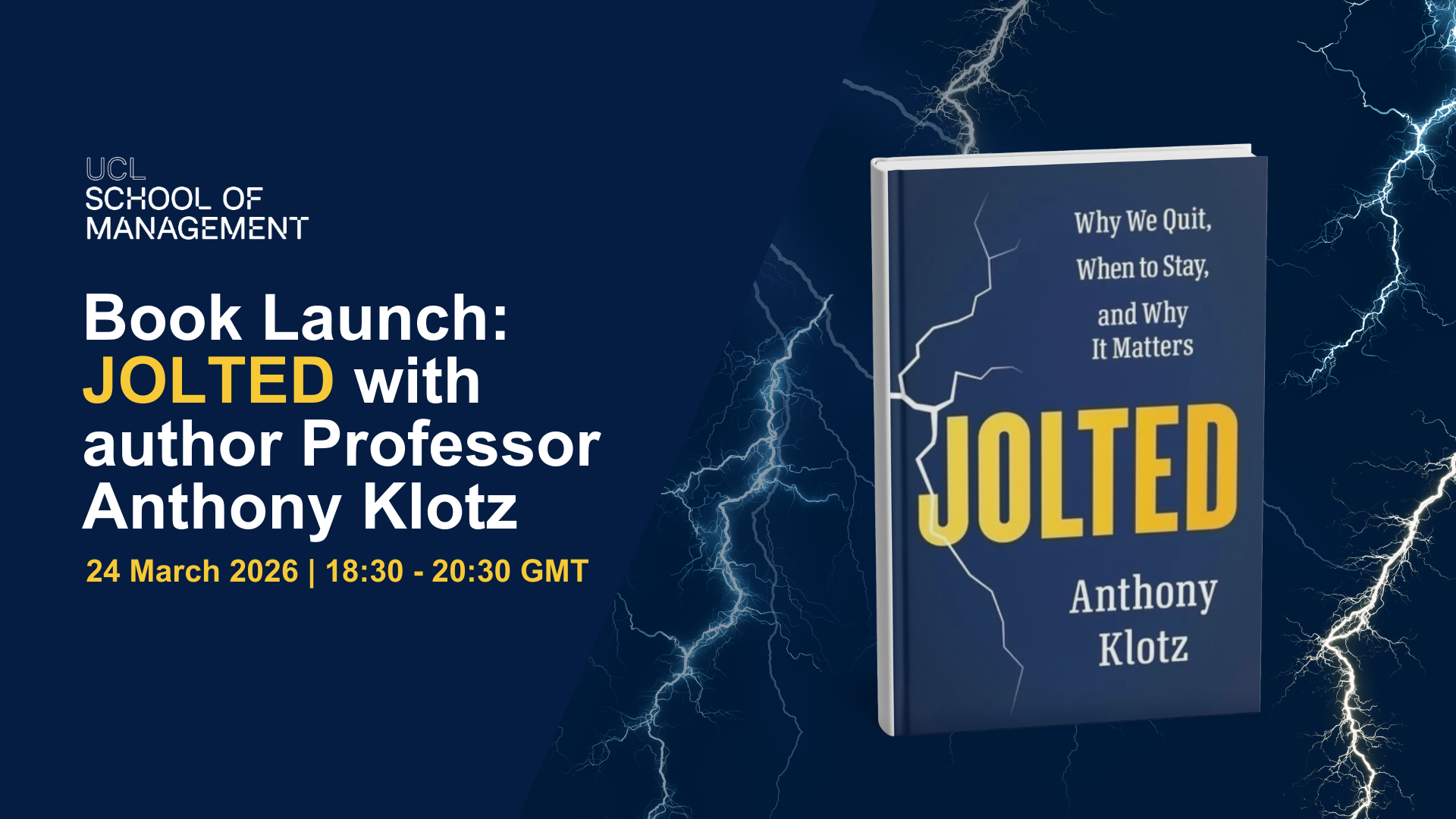 On Tuesday 24 March, UCL School of Management will host an exclusive, invite-only event to celebrate the official launch of Professor Anthony Klotz’s latest book, Jolted.